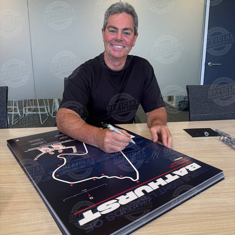 Showcasing the legendary Mount Panorama circuit in striking detail and personally signed by Craig Lowndes and Jamie Whincup, this limited-edition piece marks the end of an era - celebrating Triple Eight’s historic bond with Holden/GM at Bathurst and honouring two of their most iconic drivers.